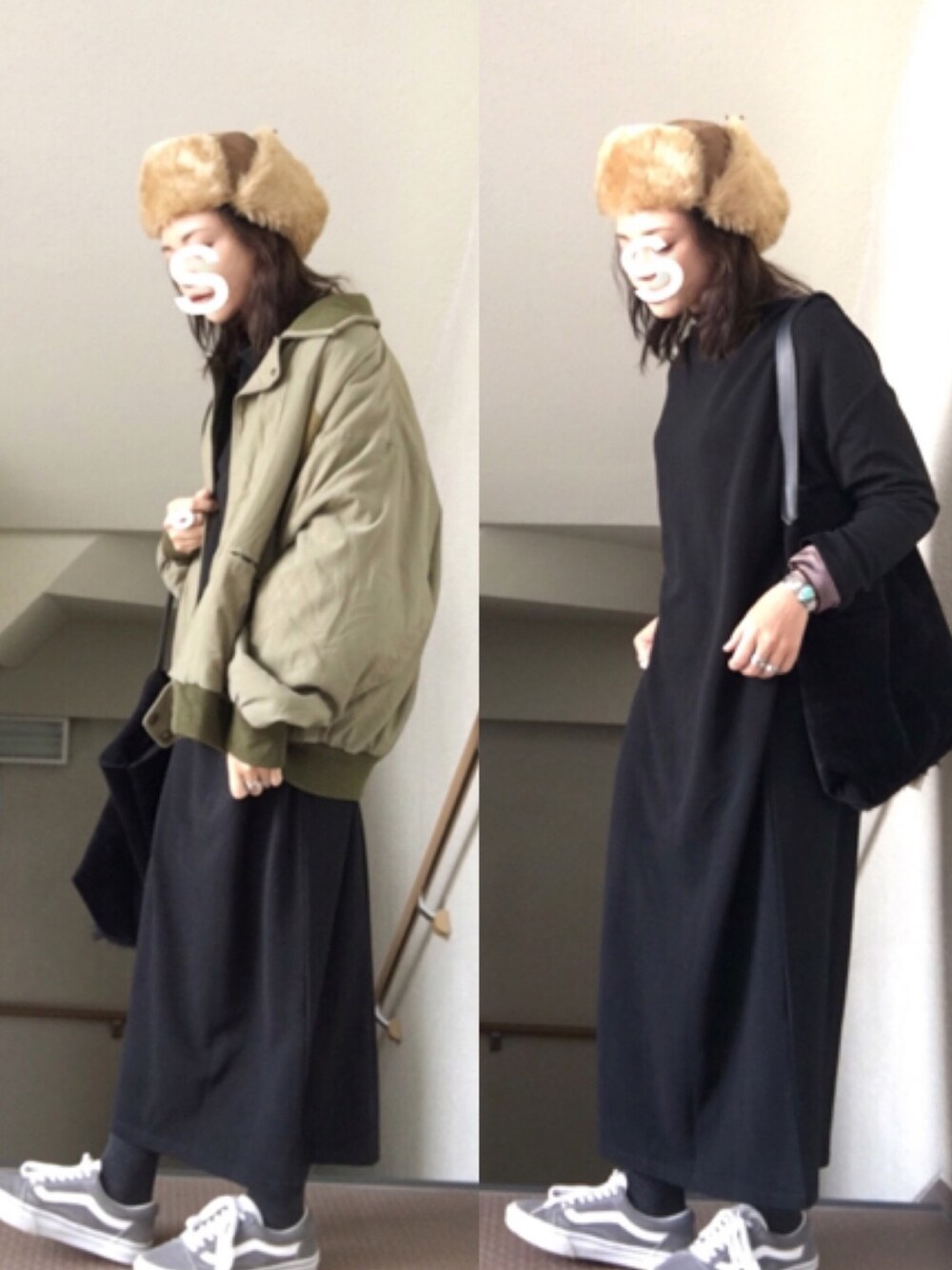 ☺︎*♡ ストンとしたワンピースと ボリュームあるもの◎ アウターないと真っ黒な日 ワンピース☺︎coca 靴☺︎vans アウター☺︎used 帽子☺︎GLOWBALWORK