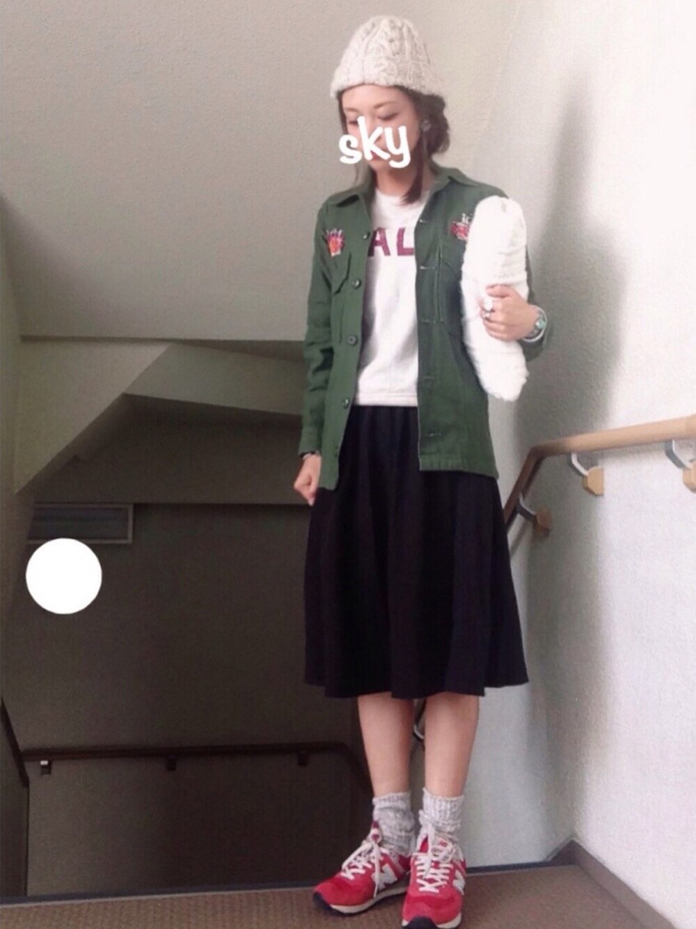 ☺︎*♡ お気に入りのリメイク ミリタリーシャツ ◎ シャツ☺︎ナスングワム スカート☺︎しまむら コート☺︎しまむら アウターは黒のチェスター着てました