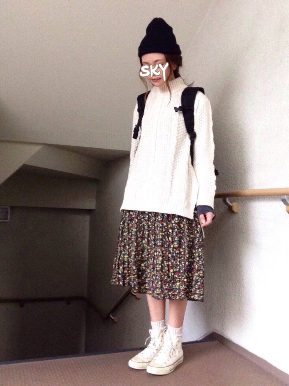 ☺︎*♡ ワンピースのうえからニット。 ムートン重ねたら ムクムクなりました ムクムクなので 足元はシロ。 靴☺︎コンバース ワンピース☺︎haco. 今年もよろしくお願いします☺︎*♡