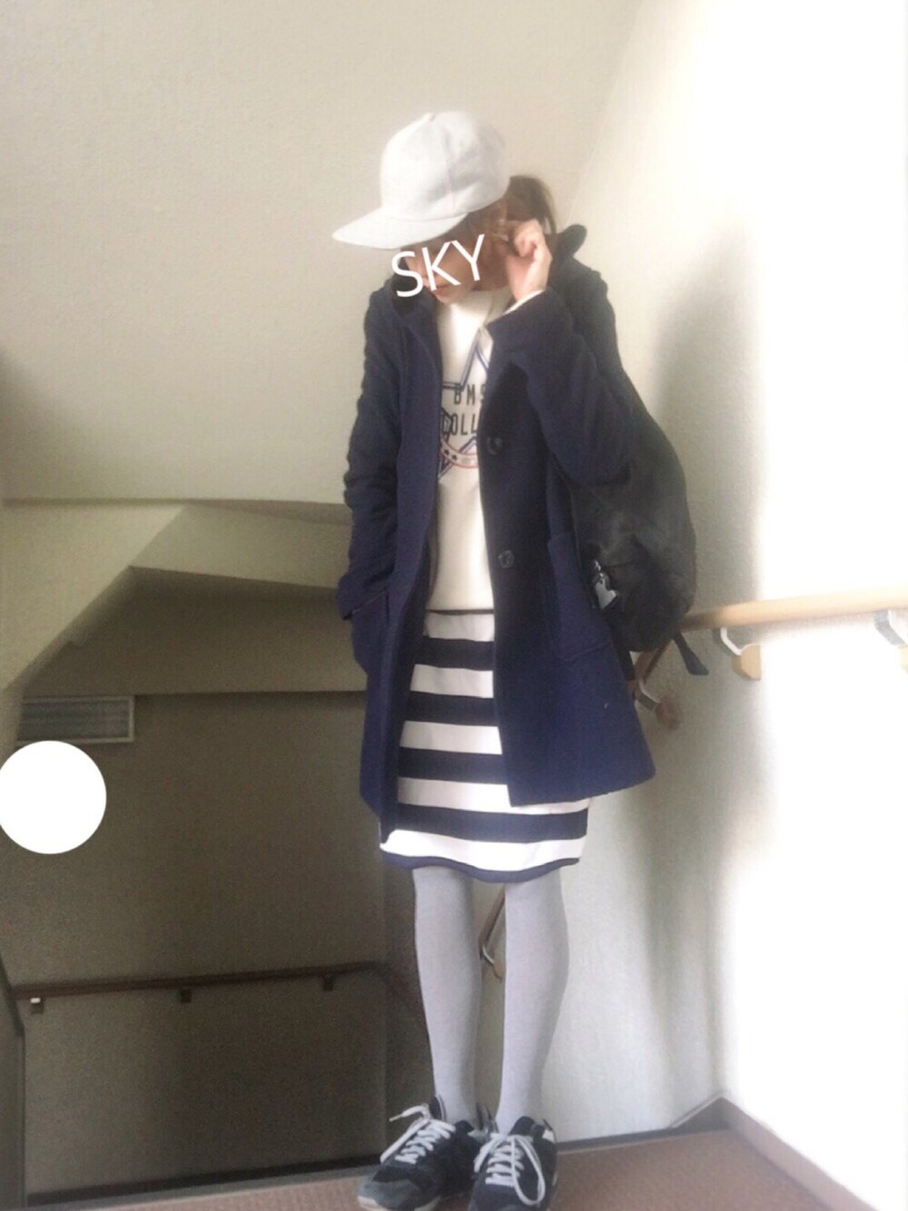 ☺︎*♡ ボーダースカートメイン☺︎ スウェット☺︎ビームス スカート☺︎しまむら カバン☺︎グレゴリー 靴☺︎アディダス ピアスのリボンが 時々 顔に当たって カサカサ音がなるので ビックリします☺︎