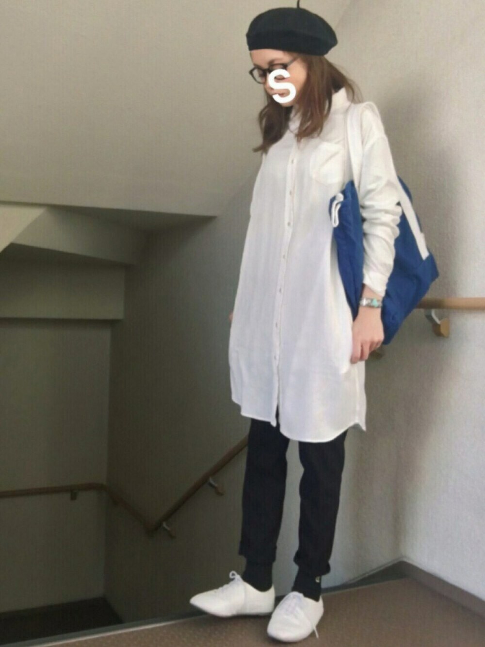 ☺︎*♡ 🐼+アオ アクセとカバンで 色足し☺︎* 真っ青のトートバッグ。 靴下が上がりすぎて 足が黒い あとで直しました◎ シャツワンピース☺︎グローバルワーク パンツ☺︎ローリーズファーム カバン☺︎チャオパニック ベレー☺︎GU