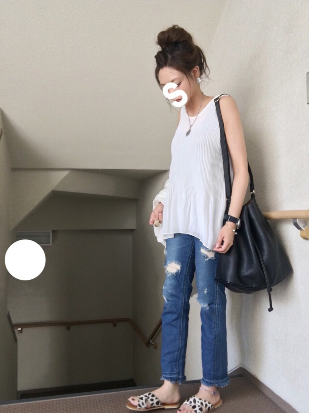 ☺︎*♡ スーツ用に買った細かいプリーツの ZARAのトップス◯ 首元詰まって 裾が広がるシルエット お地蔵さんみたいでかわいい◎ デニムとも合わせてみたかったので ダメージデニムで◎ ワイドパンツもかわいいだろうなー と思いました トップス☺︎ZARA デニム☺︎LEE カバン☺︎サンダル