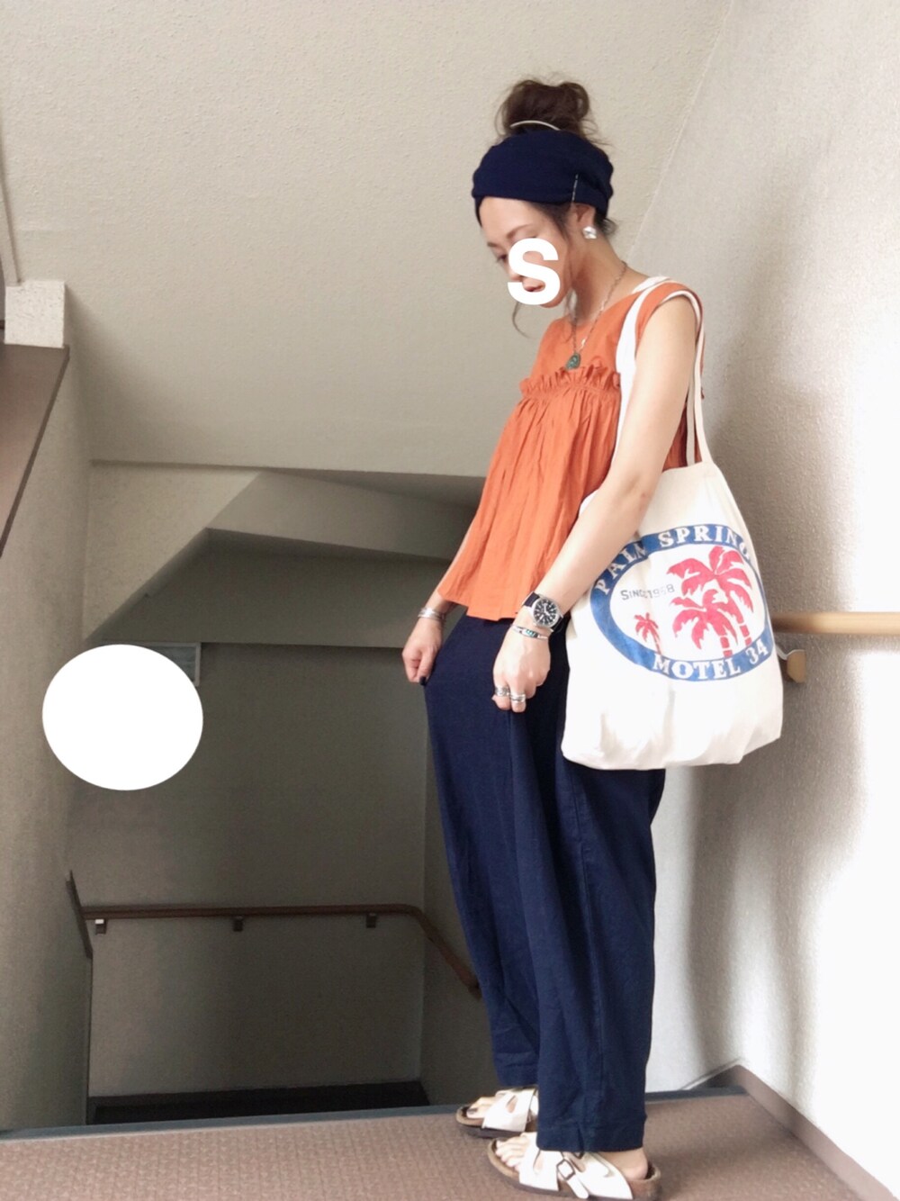 ☺︎*♡ チャイロ×ネイビー×シロ オレンジに見えるけど 赤茶色です◎ あえてネイビー合わせで おもくしました なのでサンダルはシロ カバンも軽そうなもので◯ 個人的には好きな色合わせ♡ トップス☺︎レトロガール パンツ☺︎ニコアンド 靴☺︎ビルケン このパンツゆるく履きたくてMサイズ◎ すこし丈が長いので ウエスト折り返してます