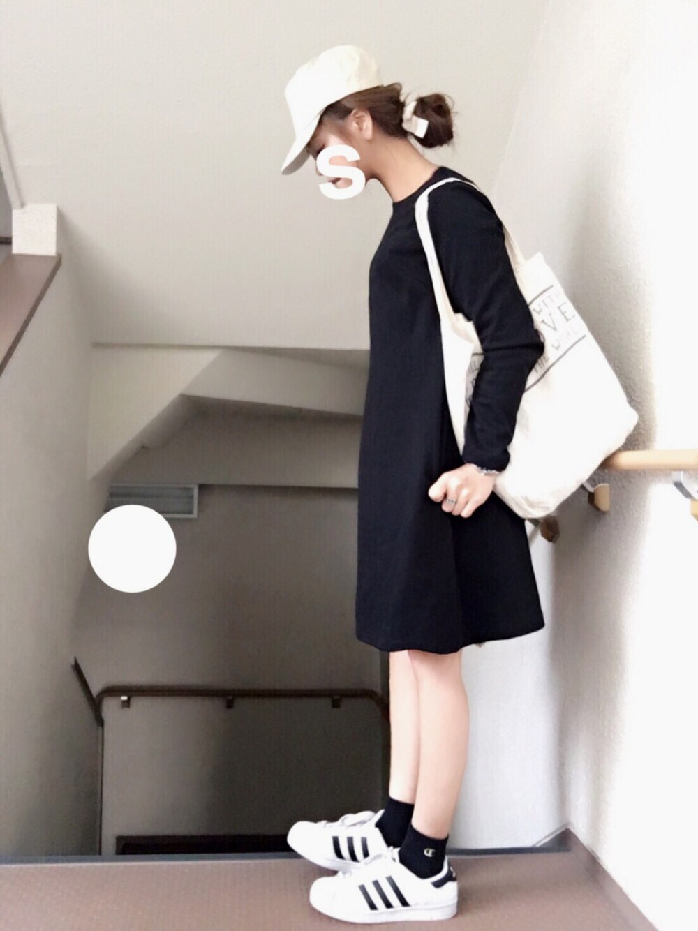 ☺︎*♡ シロクロ○ ワンピース☺︎GU 靴☺︎adidas キャップ☺︎ダイソー ヘアアクセ☺︎3coins カバン☺︎GO HEMP 🚶