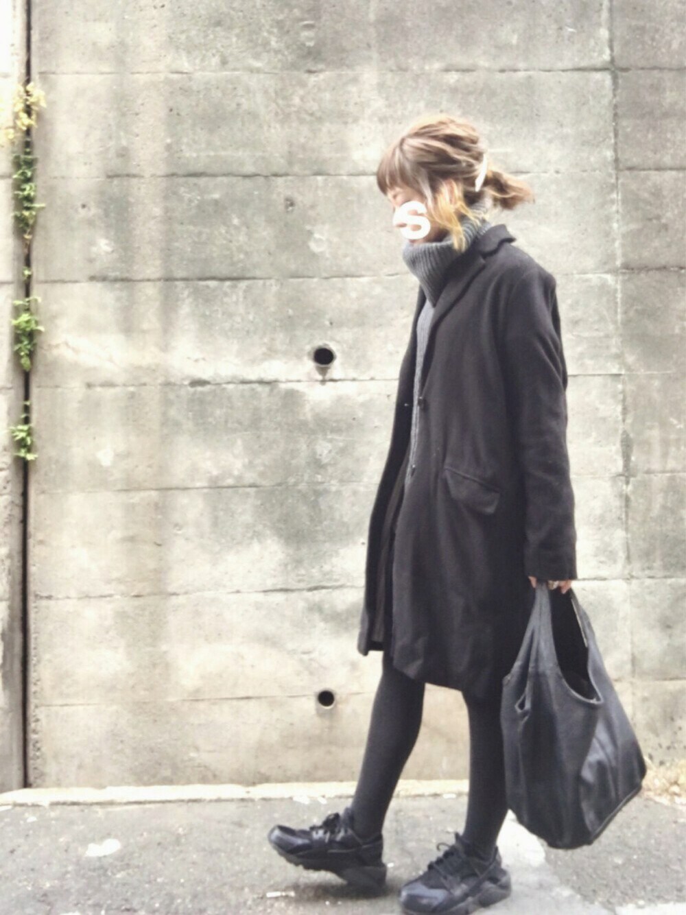 ☺︎*♡ 全身ダークトーン ◎ 去年も たくさんきたニット 肘あて 合わなくてもスキです♡ 後ろが長いのもかわいい◎ フレアスカートなので コートが変形します ニット☺︎KBF スカート☺︎GRAMICCI 靴☺︎NIKE カバン☺︎BEAMS アウター☺︎しまむら 髪の毛の内側だけ ハイトーン◎