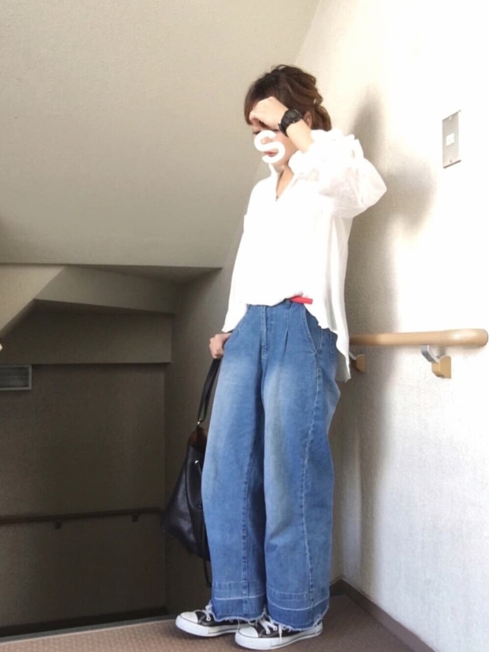 ☺︎*♡ ブラウスメイン◎ 超がつくほど シンプル なので ベルトとアクセは 赤 カバン☺︎GU アクセサリー☺︎インディアンジュエリー 薄手のブラウスだけでも暖かかった日◎