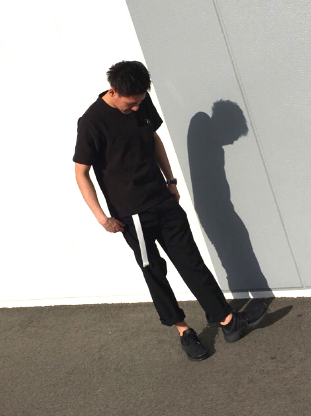 久々の投稿✨🕺 もー暑いですね。 半袖デビュー🙌😏 allブラックで、ホワイトのガチャベルトで、 ちょっとカジュアルに☝️ 夏はオシャレが難しいですね😂 頑張ろうっ!!楽しもう!! 久々の投稿でした😁