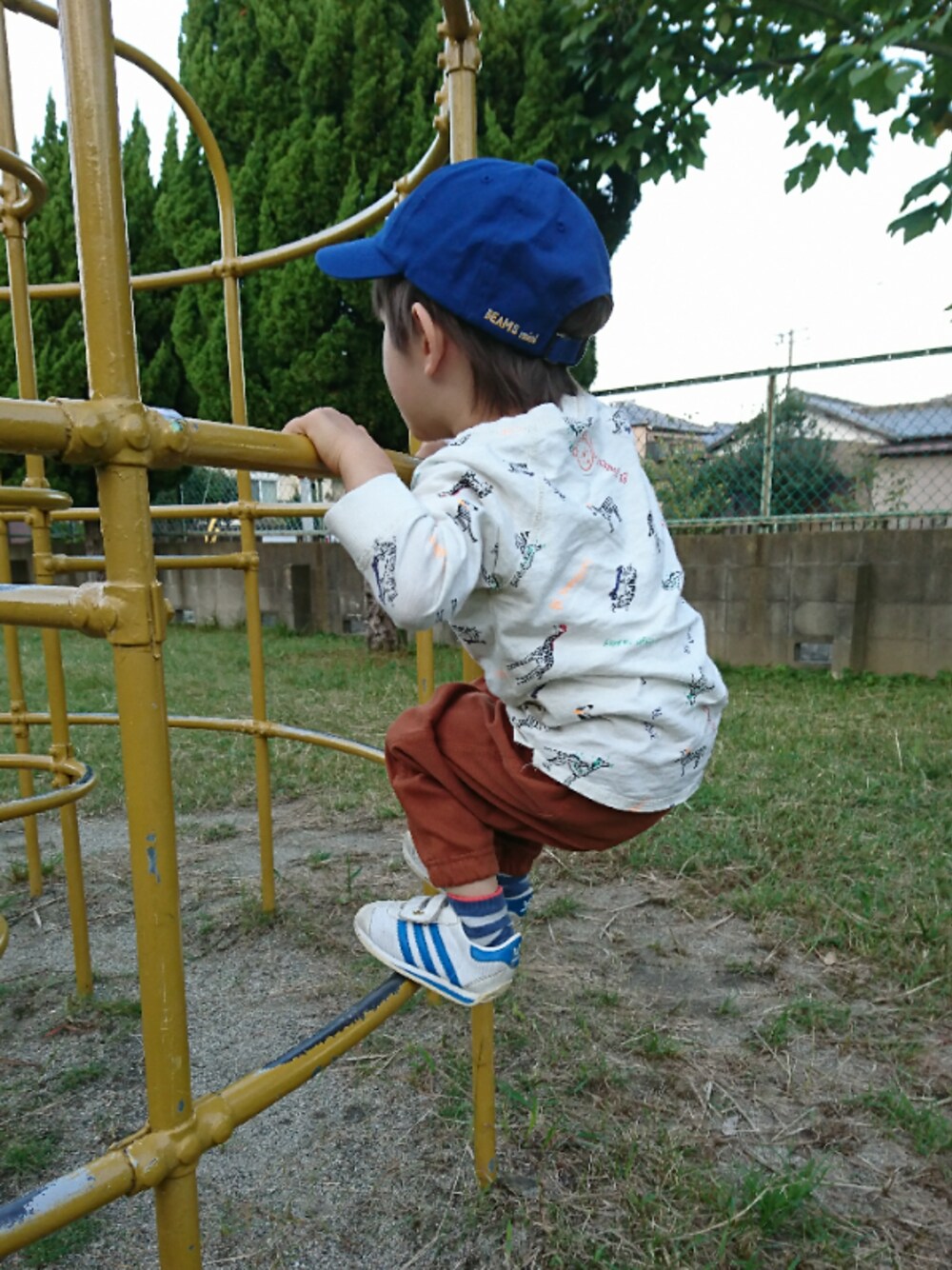 初めてジャングルジムに登って、この後もう一段登って・・・降りられないよね(笑)
