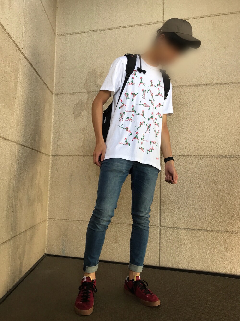 tops:supreme(white)M pants:urban research(denim)31in cap:KANGOL backpack:supreme(black) watch:Apple(space gray)42mm kicks:NIKE ID(red)28cm