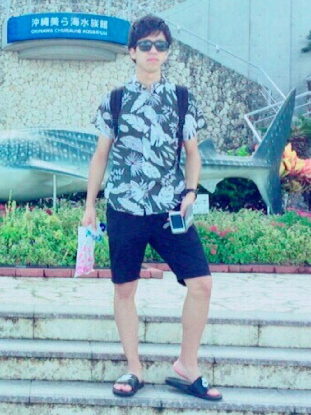 sunglasses:Ray-Ban shirt:GAP(aloha)M backpack:Manhattan Portage(black) watch:Paul Smith(black) pants:BEN DAVIS(black)M shoes:NIKE(black)27cm