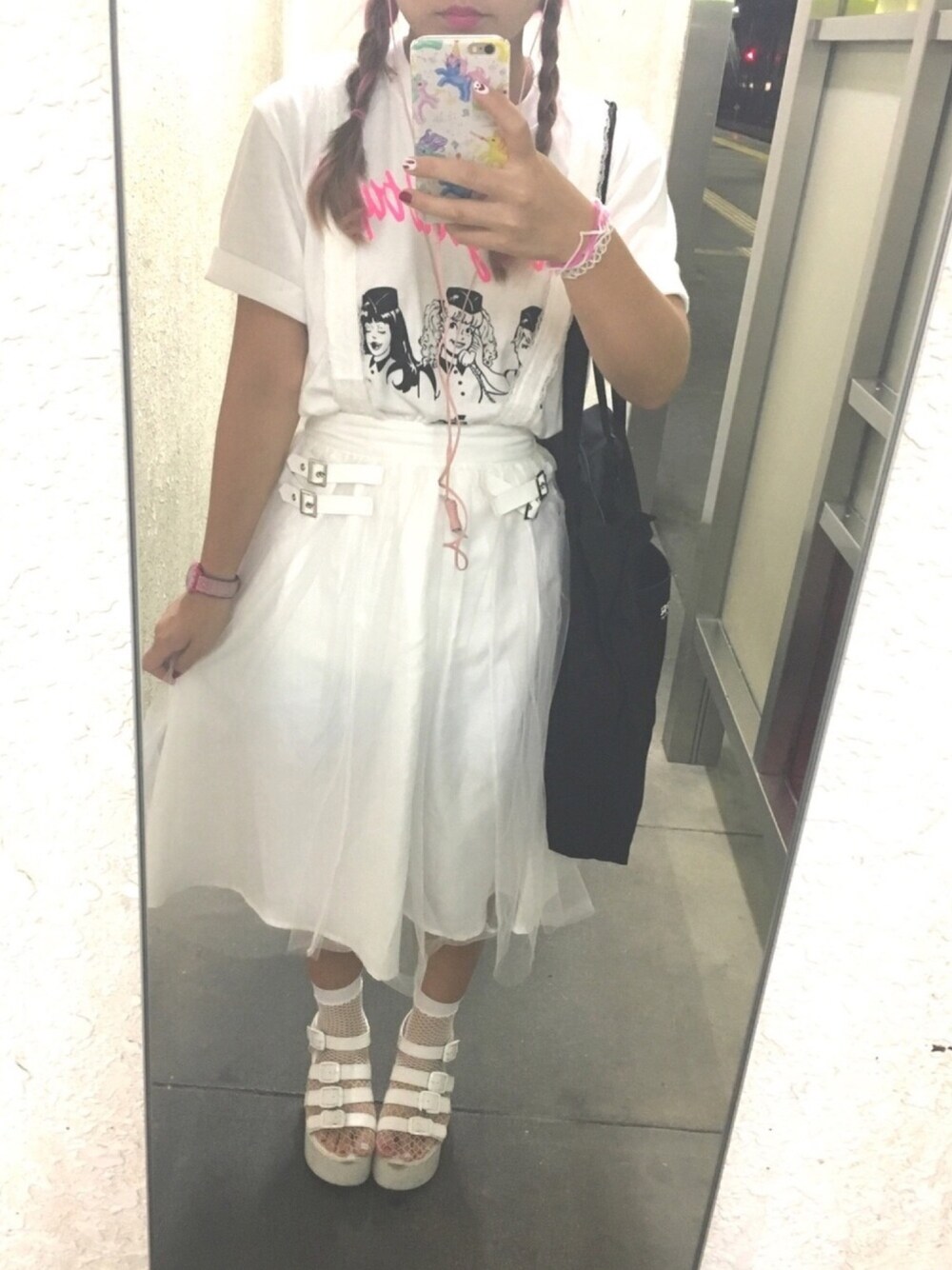 この日は学校でホワイトの ドレスコードだったのでオールホワイト!☁️🐇🐩 AymmyのT可愛い😚💜💗