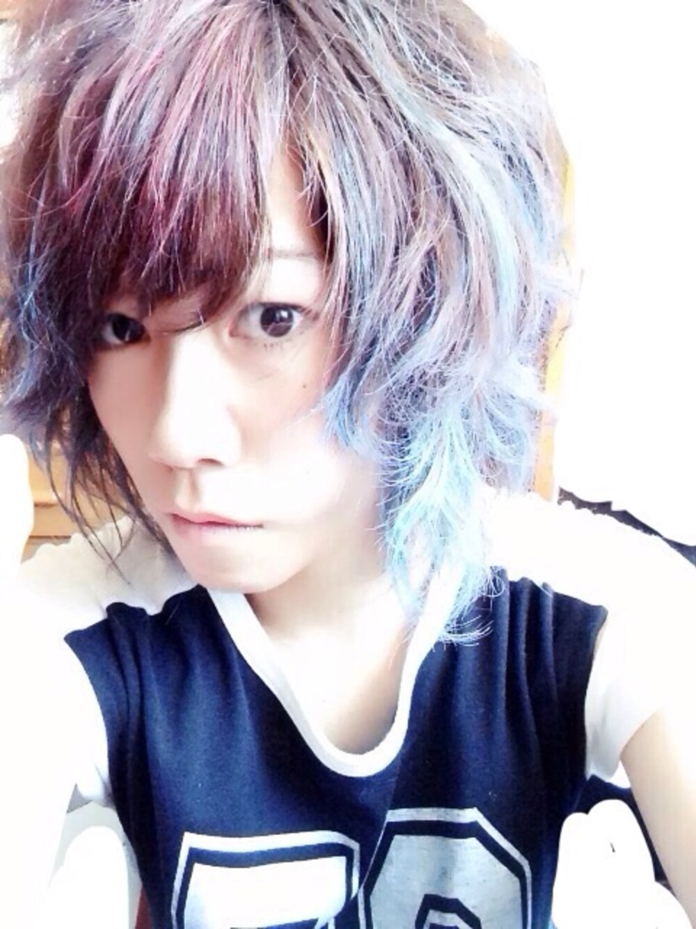 お久しぶりです。 髪をヘアカラーチョークでいじってみました、笑