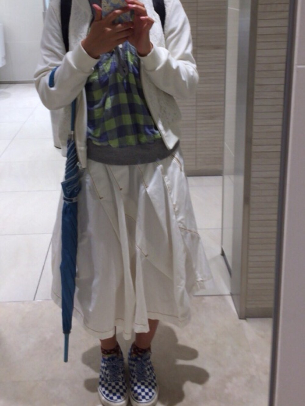 今日は白多め。なのに雨降ってる😭 むゆあくんがかわいいって言ってくれたスニーカー、「毎日履きます!」って言ったから今の所毎日履いてる✨