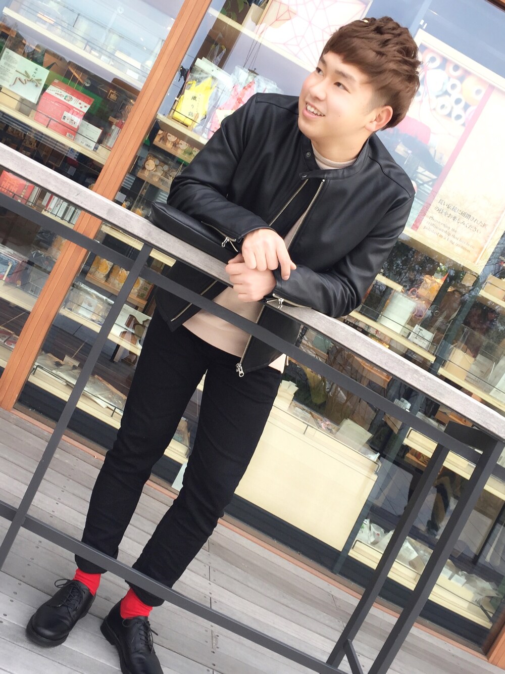 あんちゃん のライダースジャケット「Fレザーシングルライダースジャケット/768184」を使ったコーディネート