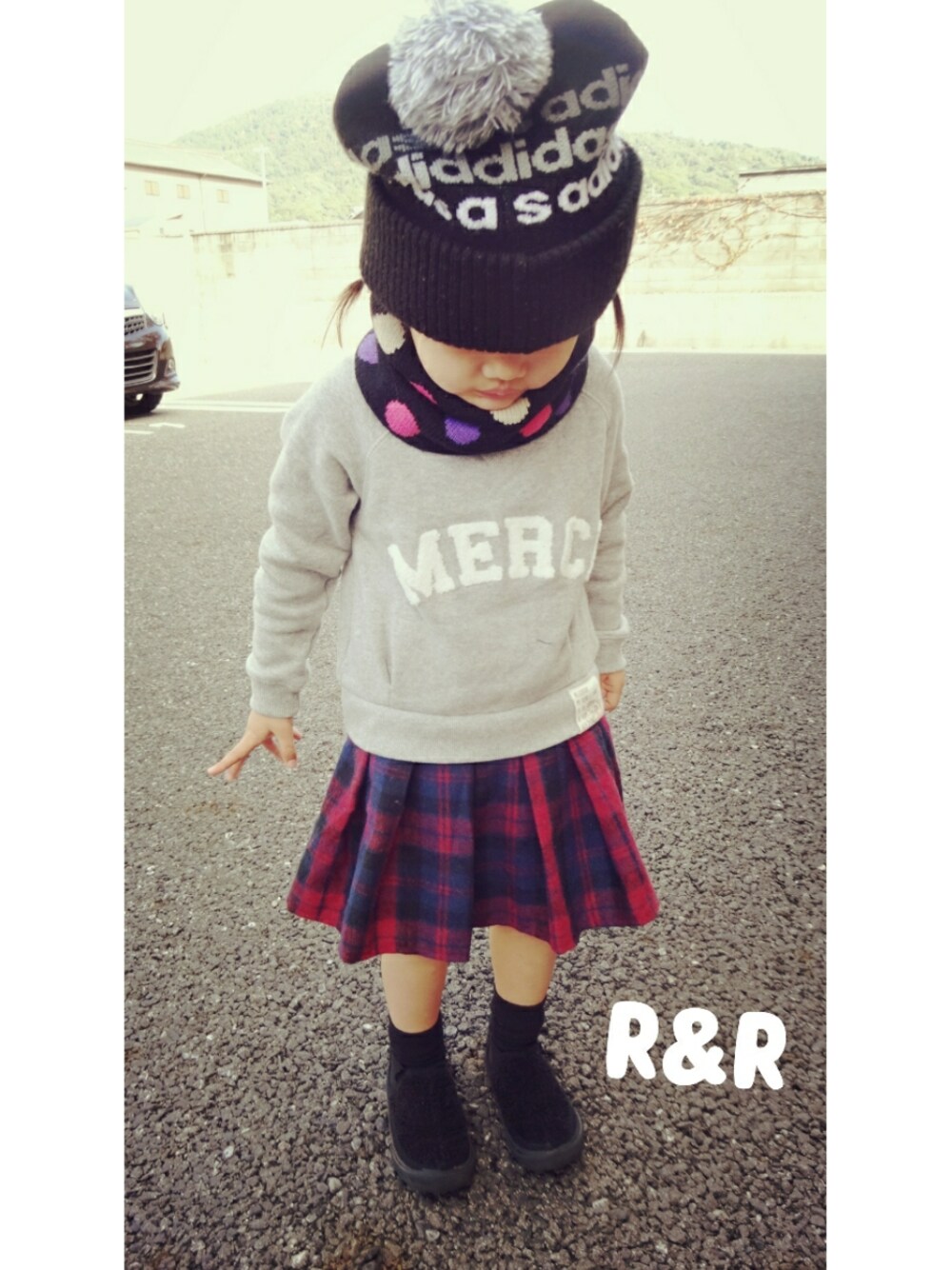 スウェットとチェックスカートが繋がってるお手頃ワンピース((o(^∇^)o)) ちょっと制服にも見えちゃう(笑) グレイとチェック好きだなぁ…