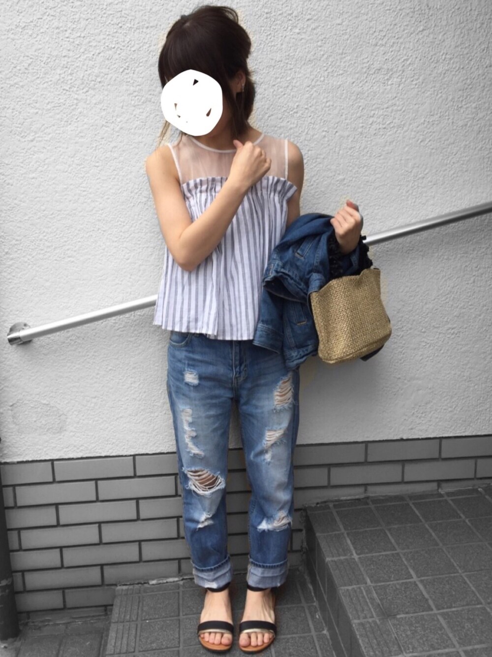 yapipi☺︎のシャツ/ブラウス「チュールコンビノースリブラウス」を使ったコーディネート