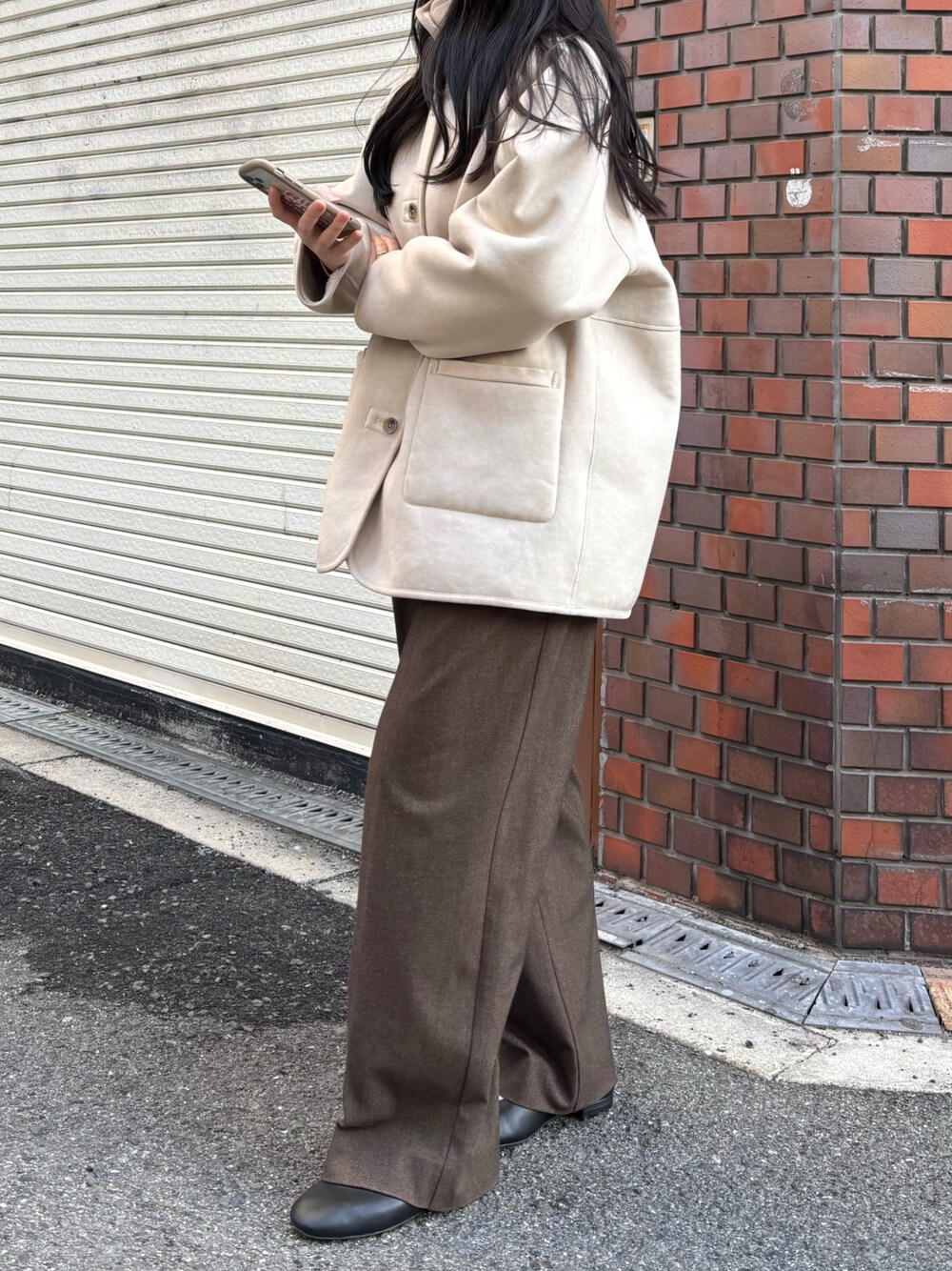 リバーシブルのムートンコートで気分で2パターン楽しめるアイテムです! モコモコあったかくておすすめです〜