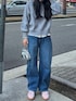 シームデザインバレルデニムはシルエットがとってもきれいでスタイル盛れ間違いなしのアイテムです! フリルにデニムにピンクのカラースニーカーで春らしいお気に入りのコーディネートに◎