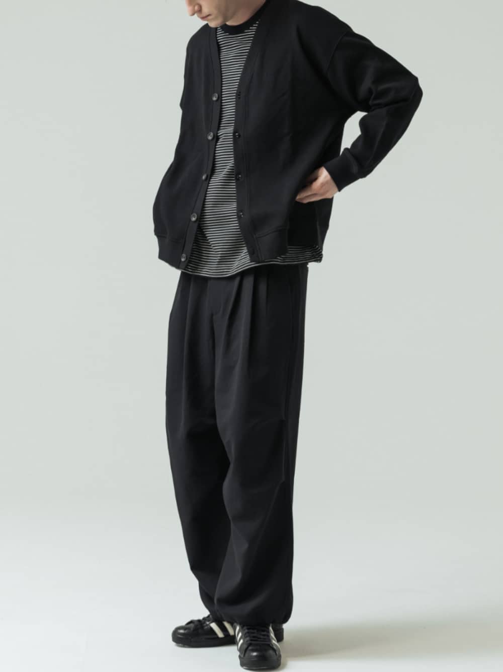 厚みのあるダンボール組織の鹿の子生地を使用したカーディガンです。主役としてもレイヤードしても、体温調節としても万能で1着は持っておきたいアイテムです。 ボーダーシャツと合わせると外れない大人カジュアルコーデに。