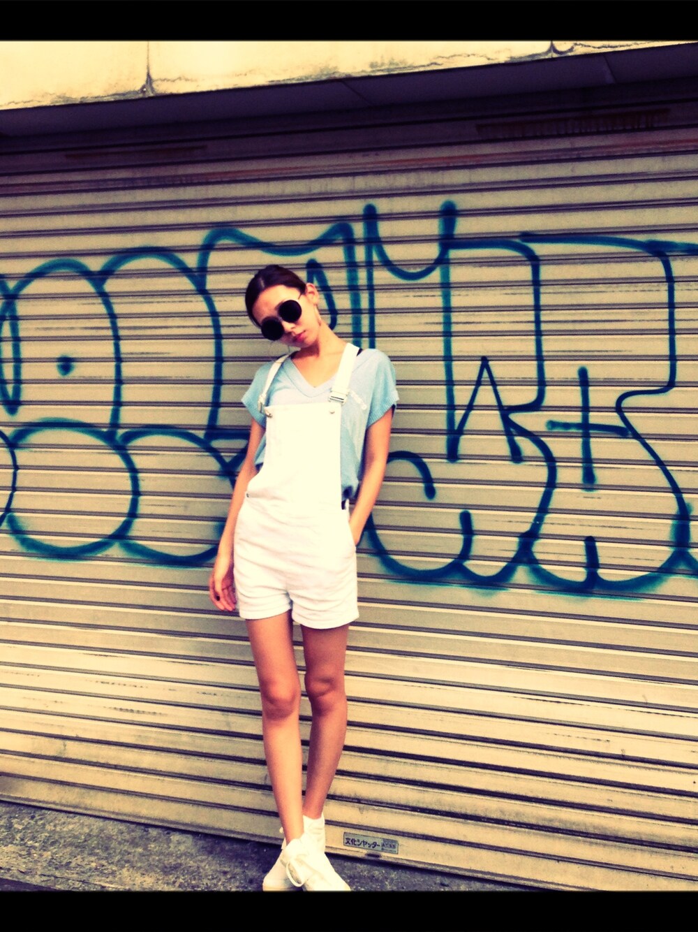 トップス:FIG&VIPER オーバーオール:STYLE NANDA スニーカー:FREE'S MART