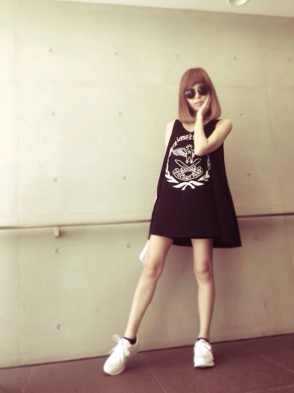 友達のブランド C-CLOSET PARKのトップス♡ 長さも生地も良い感じ☻ トップス:C-CLOSET PARK スニーカー:ニューバランス