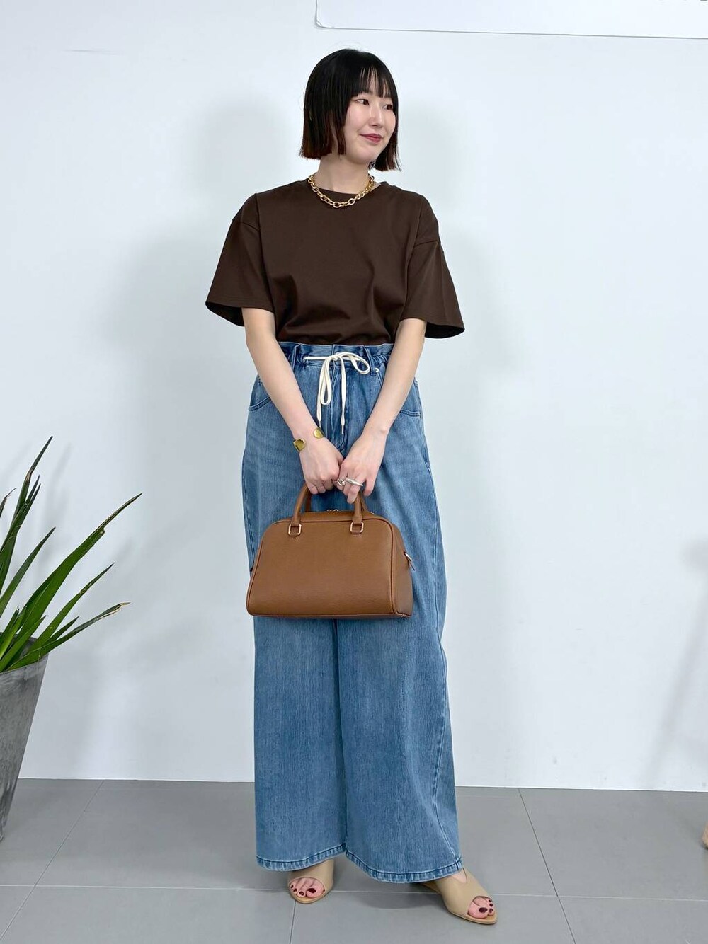 二神弓子先生×バンヤードストーム コラボYouTubeとインスタライブで着用コーデです。 骨格ストレートにより似合うスタイリング。 シンプルなアイテムに組み合わせでも アクセサリーや小物は大ぶりのものでプラスすると◎ 《着用サイズ:162cm》骨格ストレート トップス:M(1)サイズ ボトムス:M(1)サイズ