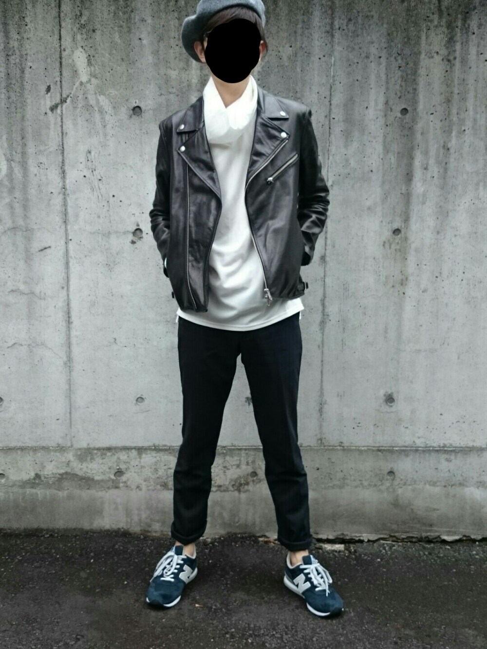 ライダースを使ったコーディネート。 上品ででも決めすぎてない感じに。 首元にボリュームがあるので、スラックスをロールアップして、足元はすっきりとした印象に。