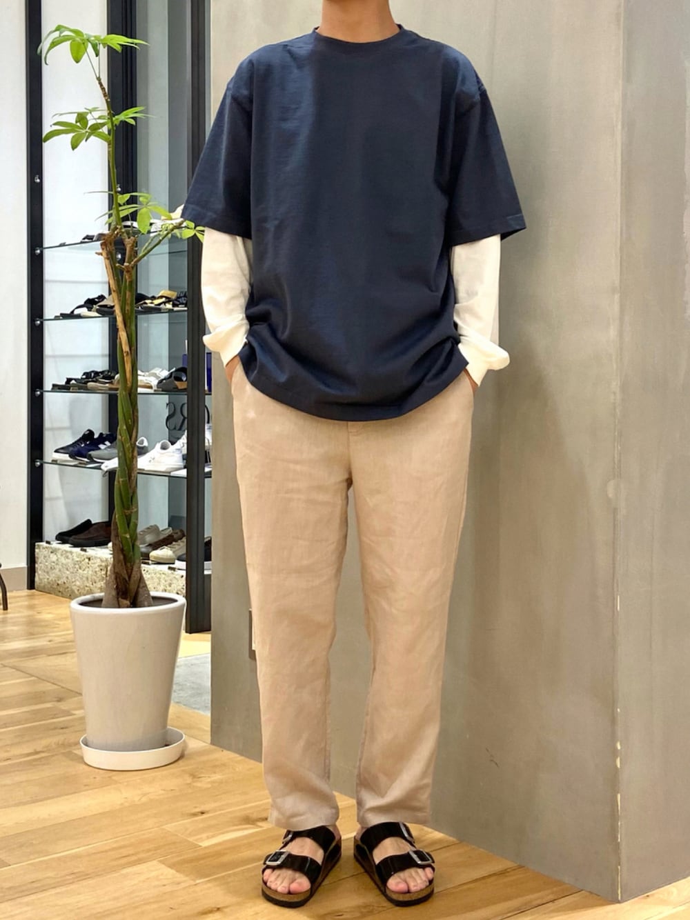 ロンTの重ね着でカジュアルに 足元はリネンとサンダルで夏らしく トップスCAMBERはXLサイズです URBANRESEARCHオンラインストアにて