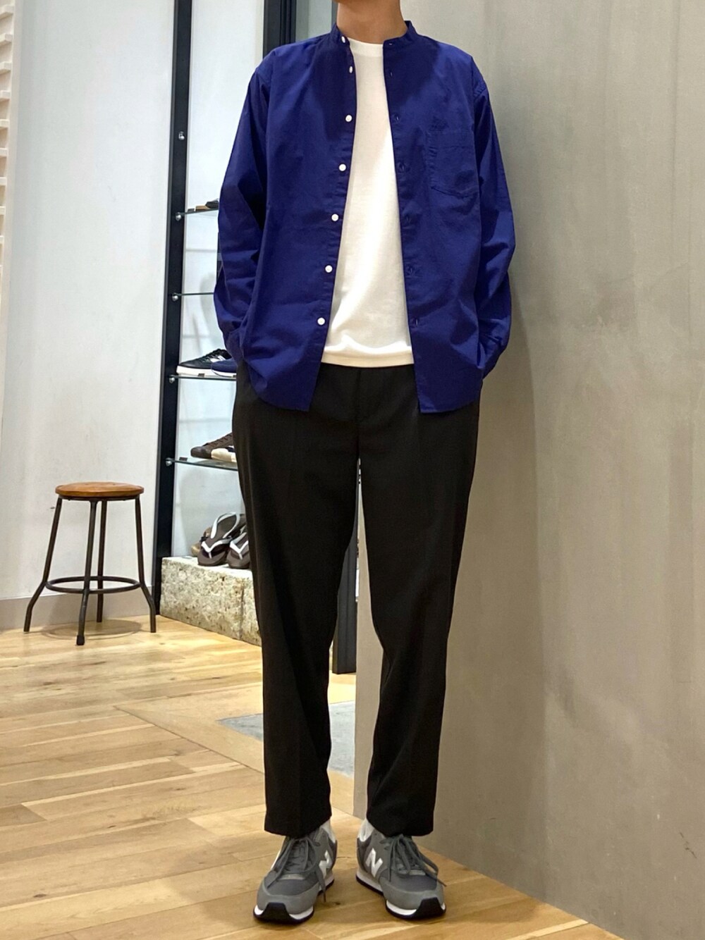 シンプルな大人カジュアルコーデ シャツのカラーでアクセントを