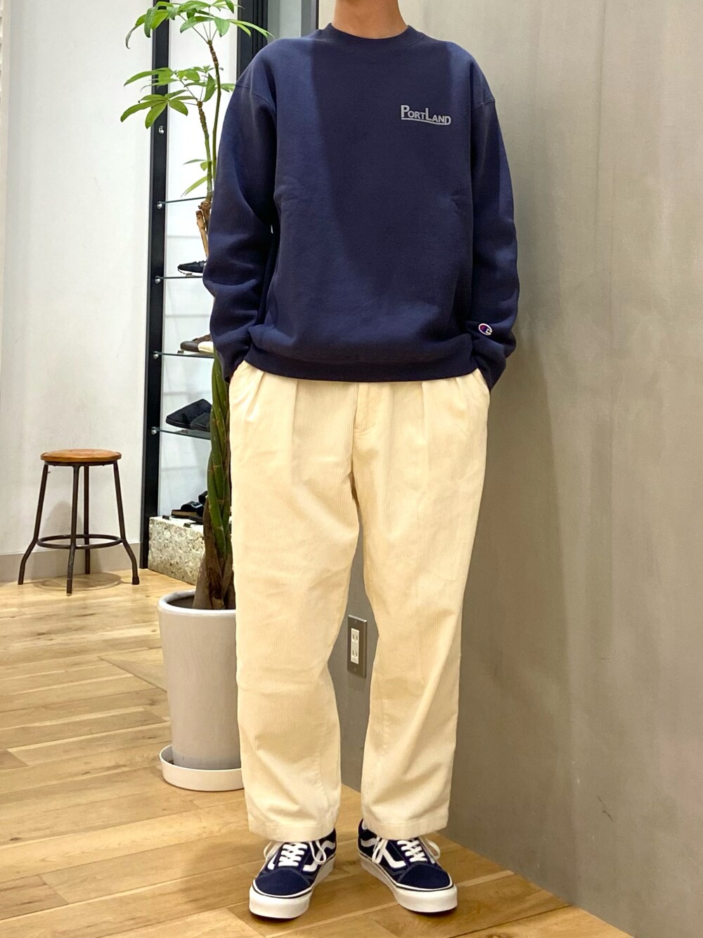 ショウゴ(UR Store タカシマヤ ゲートタワーモール)のスウェット「『別注』Champion×DOORS RWクルー」を使ったコーディネート