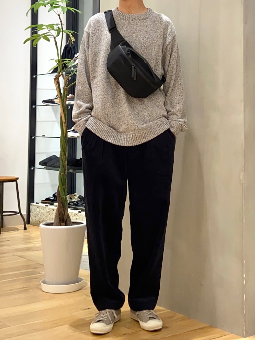 カラーリングにまとまりを持たせて シンプルで落ち着いた印象のニットコーデに