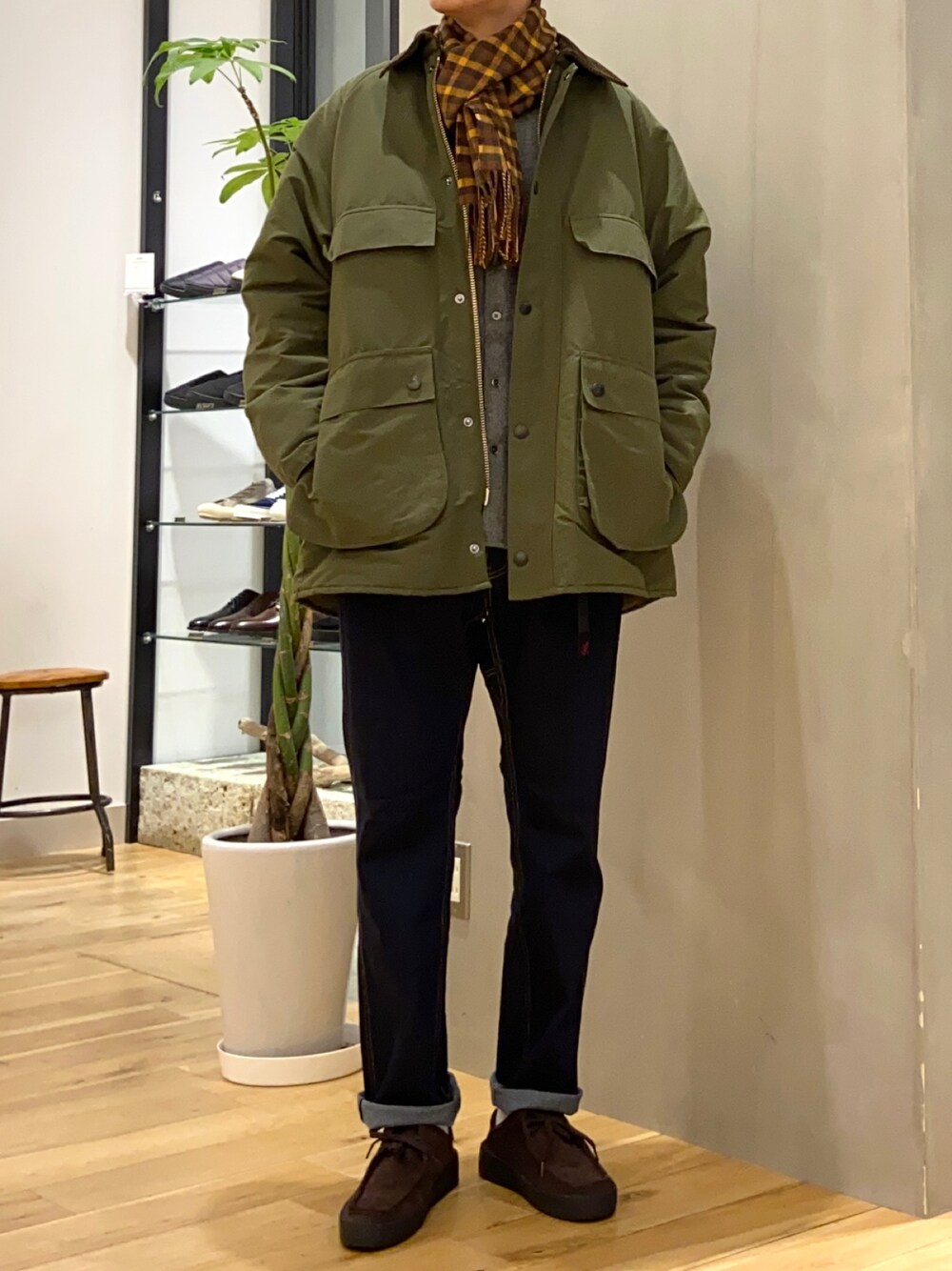 ショウゴ(UR Store タカシマヤ ゲートタワーモール)のマフラー「『別注』Whitehill&Wilsons×DOORS マフラー」を使ったコーディネート
