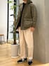 ゆるめなアウターにタックパンツを合わせて ゆったりとしたシルエットでまとまりを