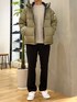 幅にゆとりのあるシンプルなコーデ 暗くなる冬コーデにあえてアウターを明るく