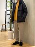 ニットとテーパードパンツを合わせて ダウンを大人っぽく落ち着いた雰囲気に