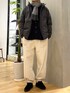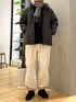 トーンを合わせたトップスに 白パンツでメリハリをつけてアクセント