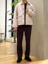 甘めな雰囲気のアウターにスラックスを 同系色で合わせて程よくカジュアルに