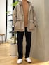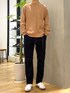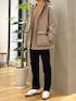 ベージュの同系色で合わせて柔らかな印象に シルエットも細身なデニムでメリハリを
