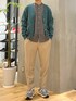 シャツとスラックスのきれいめな雰囲気に ラフなカーディガンでカジュアルダウン