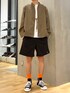 薄手なブルゾンとショーツの春夏コーデ カラーソックスでシンプルなコーデにアクセント Instagram:@slnojo