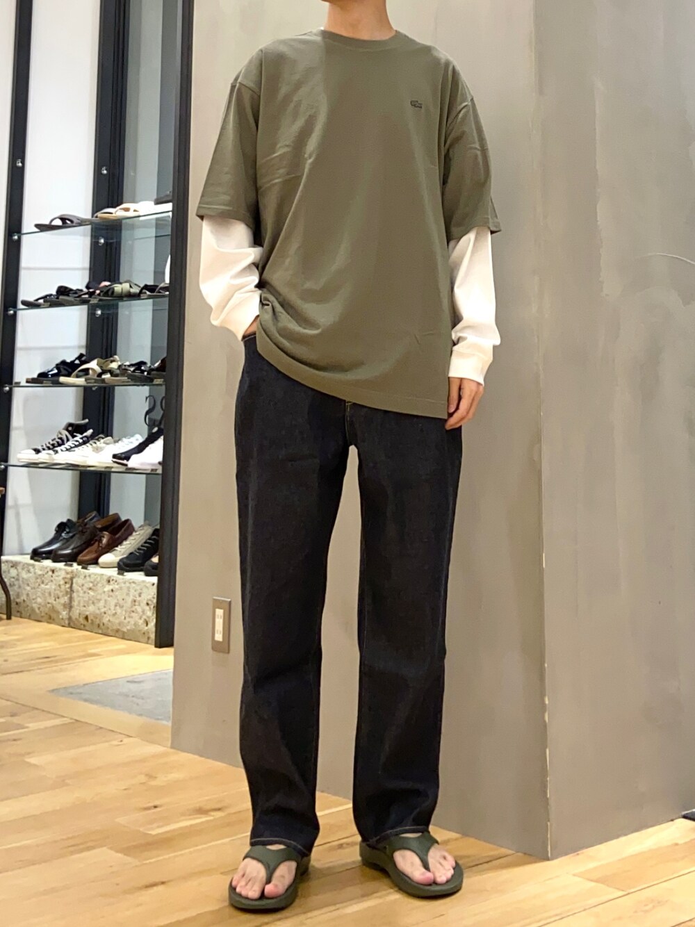 ショウゴ(UR Store タカシマヤ ゲートタワーモール)のTシャツ/カットソー「『別注』LACOSTE moss stitch loose T-shirts」を使ったコーディネート