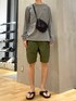 ロンTとショーツのカジュアルコーデ 小物をブラックで合わせてカラーにまとまりを Instagram:@slnojo
