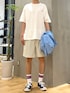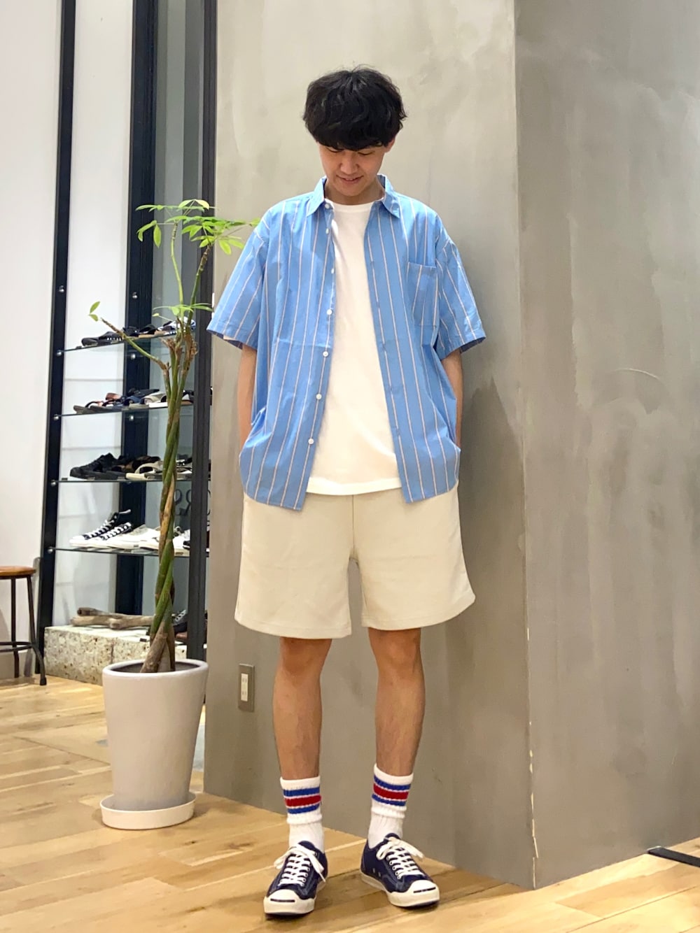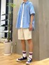 シャツスタイルにハーフパンツを合わせて ラフなカジュアルテイストなコーデに Instagram:@slnojo
