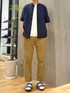 シャツを使った大人カジュアルコーデ シルエットもスッキリと落ち着いた印象に