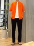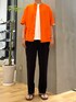 カラーがアクセントのシャツスタイルコーデ スラックスできれいめな落ち着いた印象に