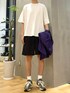 カーディガンにハーフパンツを合わせて 夏らしく、カラーにもアクセントを