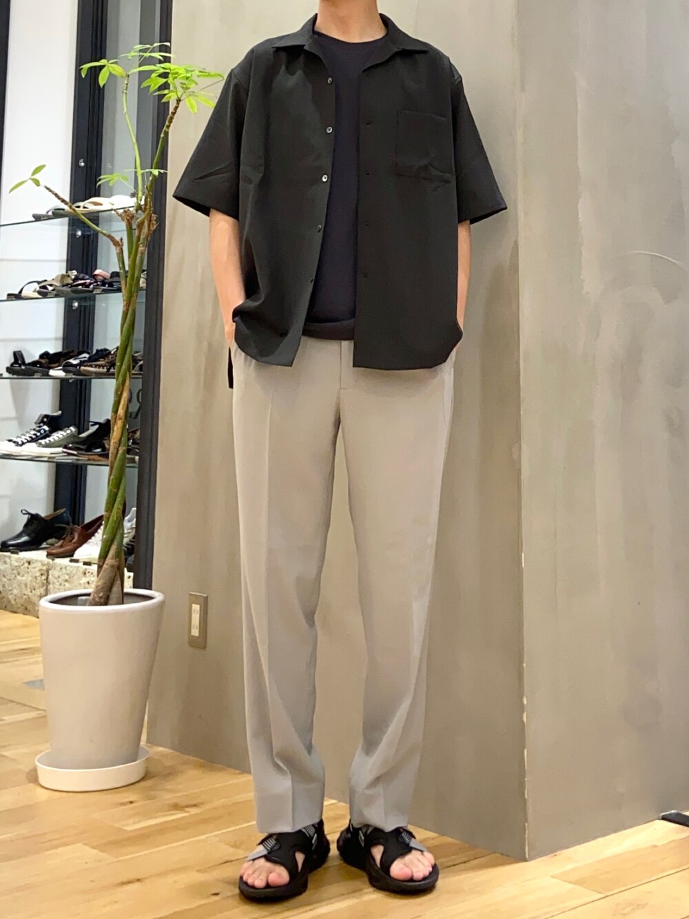 色合いもシンプルで落ち着いた雰囲気に サンダルで合わせて夏らしさも
