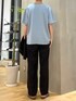シンプルなセットアップコーデ シャツもオープンカラーで夏らしく Instagram:@slnojo