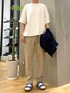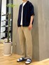スッキリとしたテーパードパンツを合わせ 大人カジュアルなシャツスタイルに
