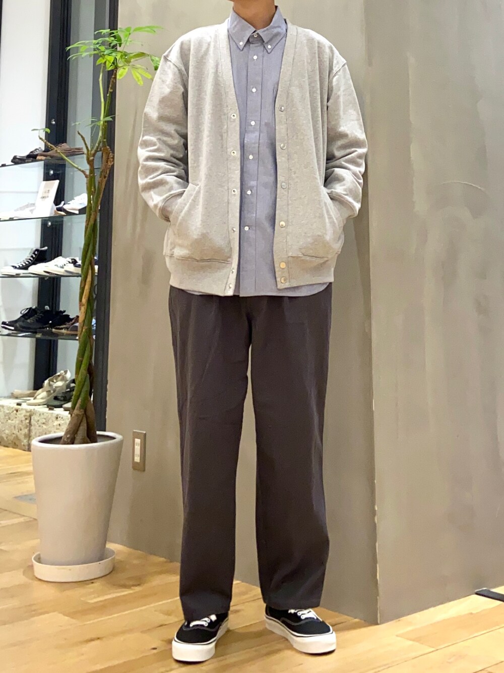 ショウゴ(UR Store タカシマヤ ゲートタワーモール)のカーディガン/ボレロ「裏毛スナップカーディガン」を使ったコーディネート